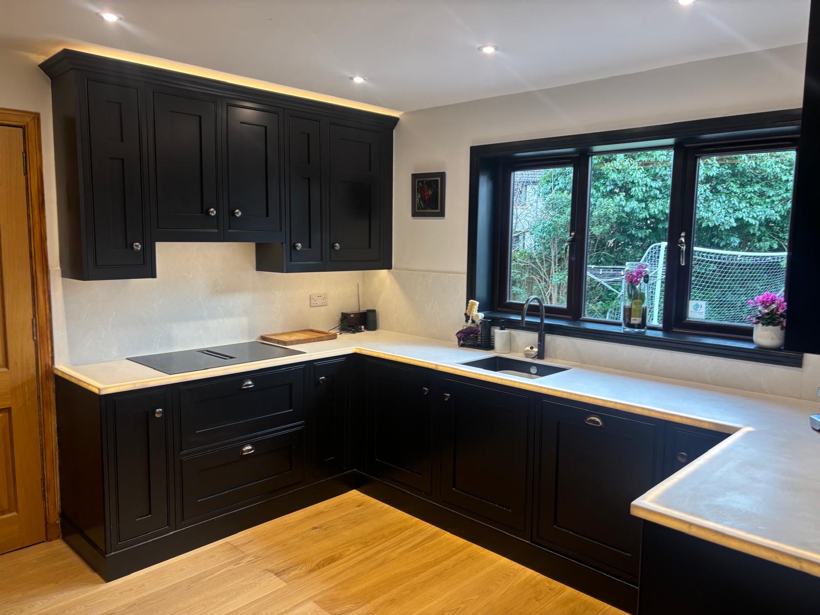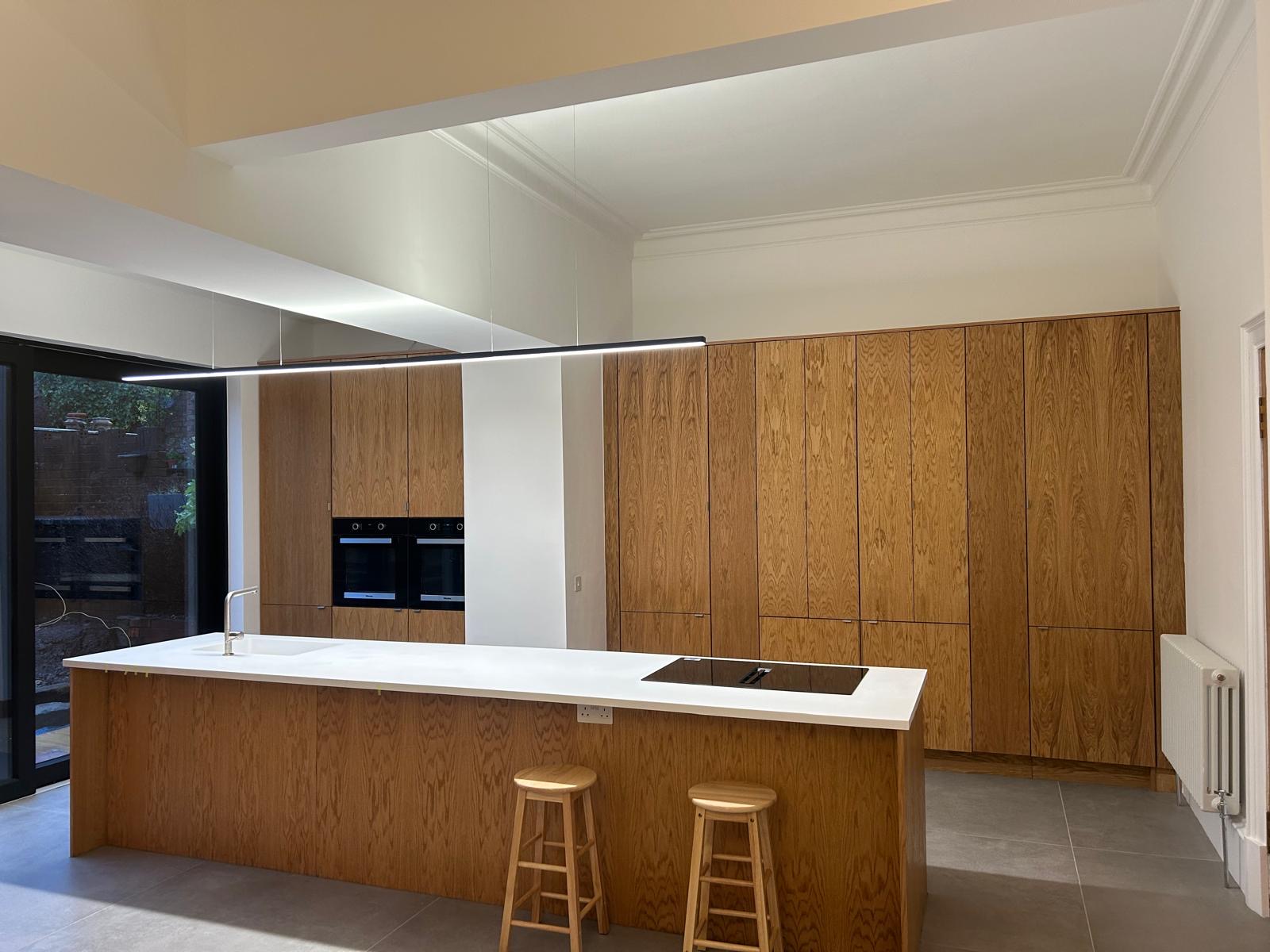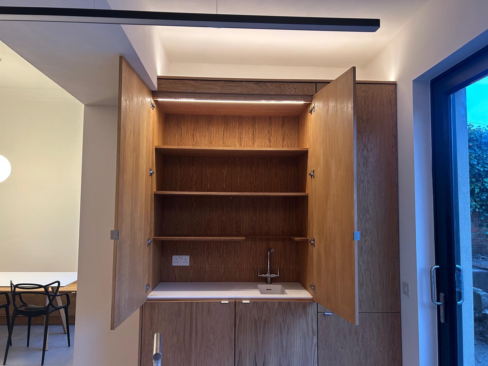 Superior quality kitchen hardware such as soft close hinges and drawer boxes are used, along with high grade water based joinery coatings. A colour match service is also available as is a full spectrum of lacquer tints and oil stains. We offer an all trades service, plumbers, joiners, electricians etc.