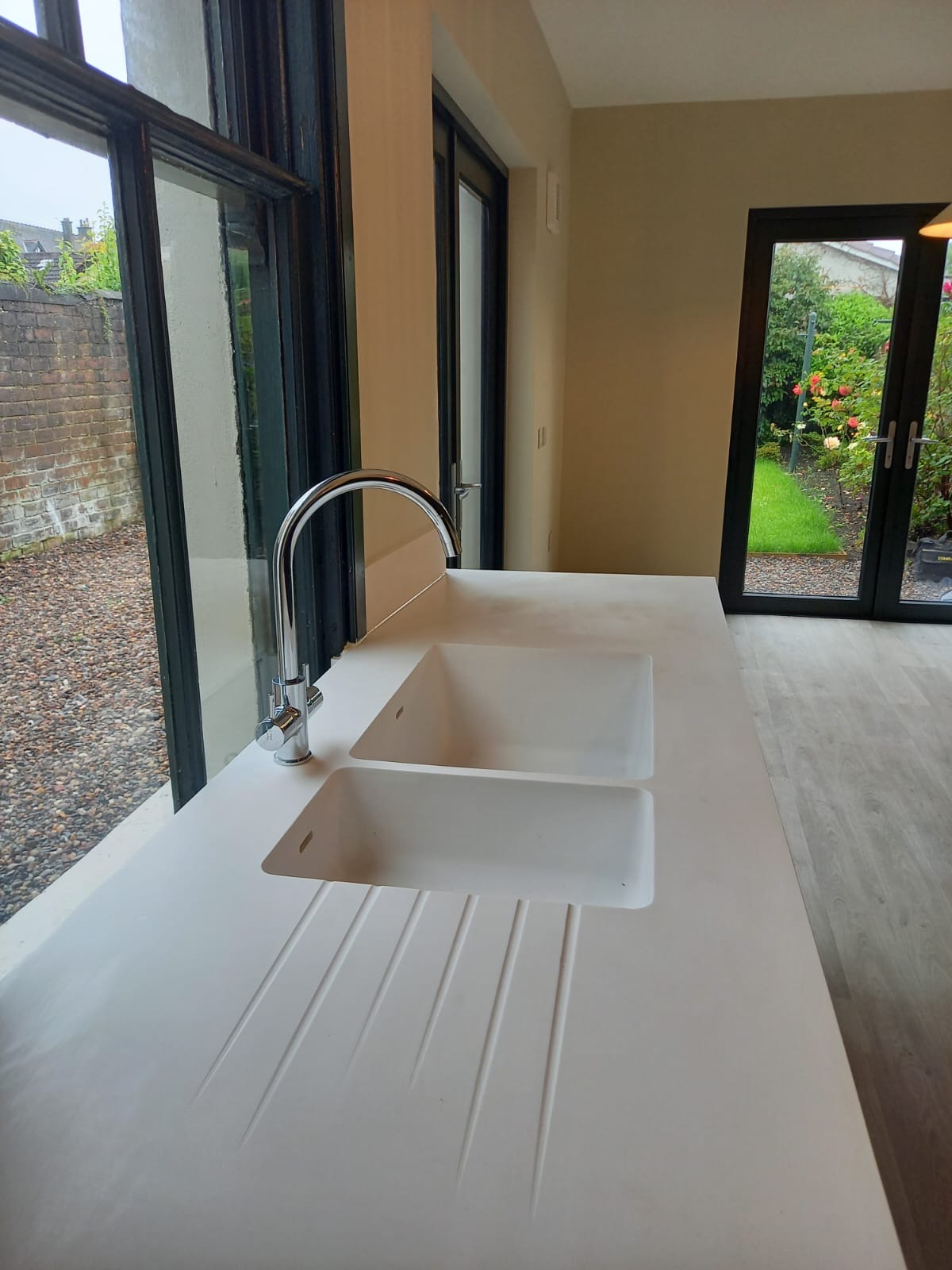 We purchase Hi-Macs in raw material form and process into integrated moulded sinks complete with drainer grooves to give a seamless finish. This non-porous surface is available in 80 colour choices with samples to view.